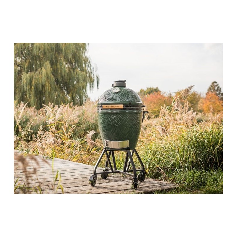 Deze gepoedercoate stalen standaard is uitgerust met een stevige handgreep waarmee je je barbecue overal heen kunt rollen, of het nu is om hem uit de wind te houden, te beschutten, tijdelijk in je garage te parkeren of nogmaals om het over oneffen of onpraktisch terrein te verplaatsen. Dankzij de vier multidirectionele zwenkwielen, deels voorzien van een vergrendelingssysteem, is het verplaatsen van je Big Green Egg geen probleem meer.