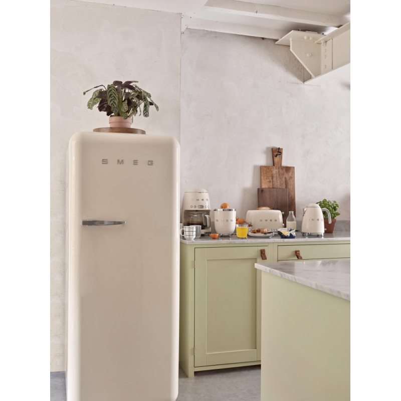 Met zijn retro jaren 50-stijl en elegantie worden kleine Smeg-apparaten ultra-designaccessoires voor uw keuken! Het Smeg Breakfast Essentials-pakket, met een vintage look en ronde vormen, heeft een zachte crèmekleur met chromen details.