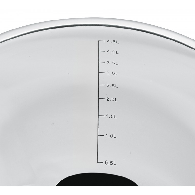 De Küchenprofi 24 cm 4,8 L roestvrijstalen mengkom met maatverdeling en luchtdicht deksel is praktisch, robuust en hygiënisch. De roestvrijstalen kom is vaatwasserbestendig.