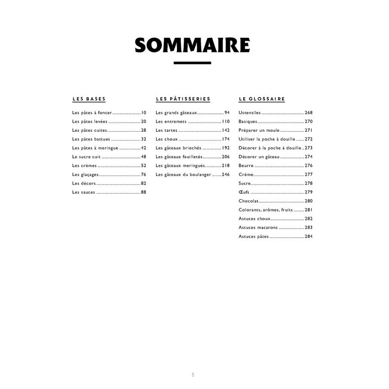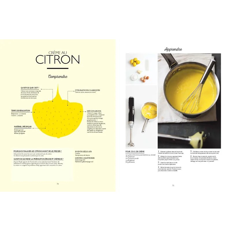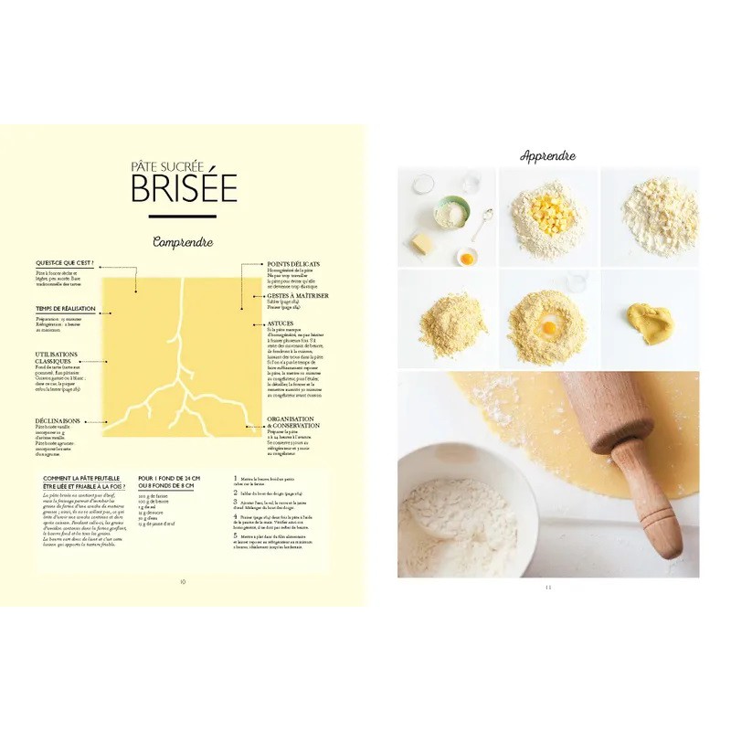 40 recettes de base : Les pâtes de base (brisée, sablée, feuilletée, à choux, levée, battue, crémée, meringuée). Les crèmes de base (pâtissière, au beurre, anglaise, chantilly, d'amandes, ganaches et mousses). La maîtrise du chocolat. L'art de transformer le sucre.