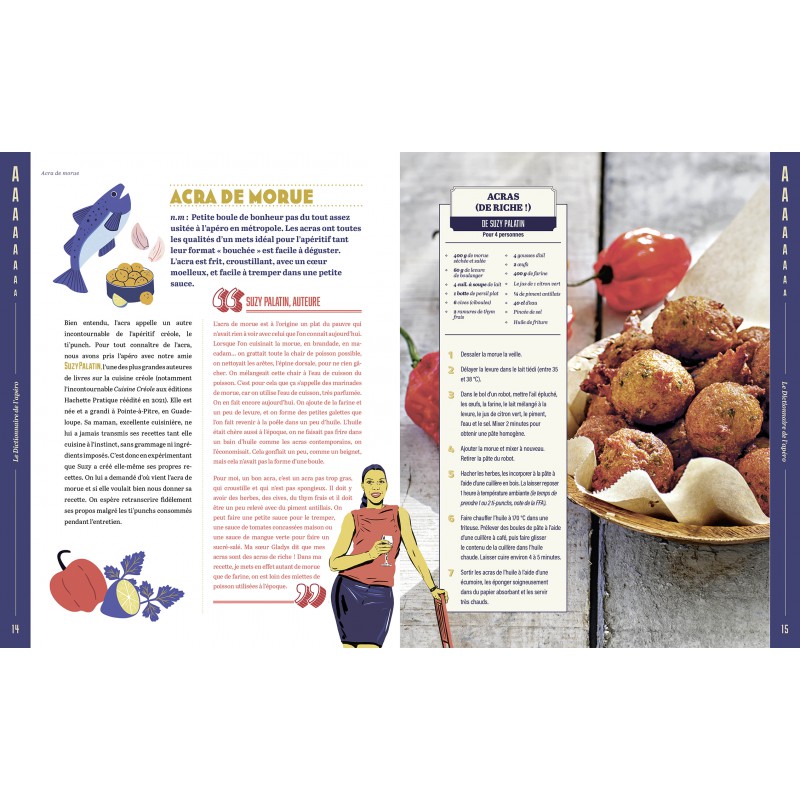 Dictionnaire de l'Apéro is een origineel en ongebruikelijk woordenboek, maar vol met ultragedocumenteerde definities, anekdotes, portretten van producenten en originele recepten om het perfecte aperitief te bereidenHet is ook een heel leuk kookboek om cadeau te geven aan alle liefhebbers van aperitieven, brunches en avonden met vrienden.