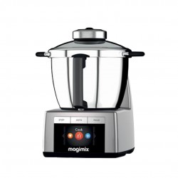 De Magimix Cook Expert is een echte kookrobot met een inductieverwarmingssysteem, waardoor hij sneller en veiliger op temperatuur komt. Hij kookt van 30 tot 160°C en beschikt over een nauwkeurige temperatuurregeling, zodat je tot op de graad kunt koken. Een timer, van 5 seconden tot 2 uur, maakt het mogelijk om de bereidingstijd exact te meten. Hij kan sudderen, je soepen of sauzen warm houden, chocolade smelten...De dubbelwandige inox kom maakt het mogelijk om je gerechten vooraf te bereiden en tot 2 uur warm te houden. Het luchtdichte glazen deksel biedt een 360° zicht op de inhoud, zodat je het kook- of mengproces eenvoudig kunt volgen.De kom wordt geleverd met een universeel mes om te mengen en te verwarmen en rechtstreeks in de kom te mixen, een stoommand met tussenplateau, een klopper voor eiwitten en een speciale hittebestendige spatel om de kom eenvoudig te legen.
