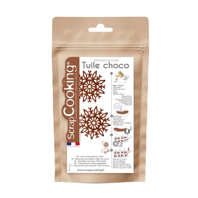 De 120g Chocolade Tuile van Scrapcooking is een kant-en-klare poedermix waarmee je snel en gemakkelijk heerlijke chocoladetegels maakt om al je gebak, hoofdgerechten, taarten, kerststolpen en meer te versieren.