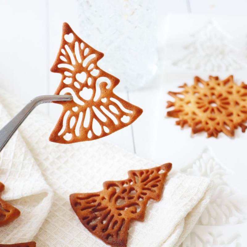 Deze bereidingswijze is heel eenvoudig: voeg gewoon eiwit en boter toe en volg de instructies op de verpakking voor een snel en eenvoudig recept voor decoratieve tuiles. Je kunt het mengsel uitsmeren op een siliconen tuilemat en decoraties maken die top-patissiers waardig zijn.