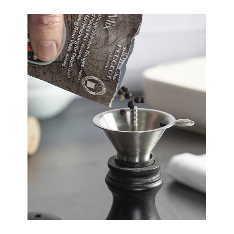 De Easy RVS Kruidentrechter is gemaakt van hoogwaardig RVS en past perfect bij alle Peugeot zout- en pepermolens