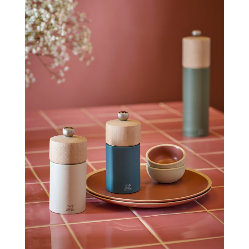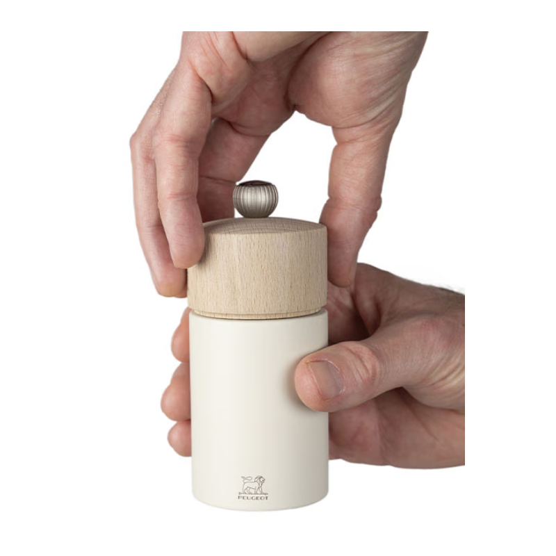 De Peugeot Boréal 12 cm Plume White Zirlion zoutmolen is een verfijnde en stijlvolle zoutmolen, ontworpen voor het malen van droge zoutkorrels. Met zijn prachtige matwitte afwerking, gecombineerd met beukenhout, voegt hij een vleugje kleur en elegantie toe aan uw eettafel of keuken. Als onderdeel van de Boréal-collectie combineert hij perfect met de blauwe, groene, grijze en roze pepermolens uit dezelfde serie.