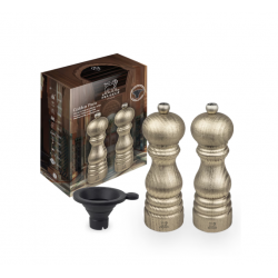 De Duo Molenset "Podium" (18 cm) is het perfecte cadeau voor elke gelegenheid en voor iedereen die van design en elegante keukenaccessoires houdt. Deze Peugeot molenset past in elk interieur, of het nu klassiek of modern is. Dankzij de handige siliconen trechter kunt u zout en peper netjes in de molens gieten.Het bovenste deel van de Peugeot Line molens is gemaakt van hout afkomstig uit gecertificeerde bossen die met respect voor natuurlijke hulpbronnen worden beheerd en geverfd met verf op waterbasis.