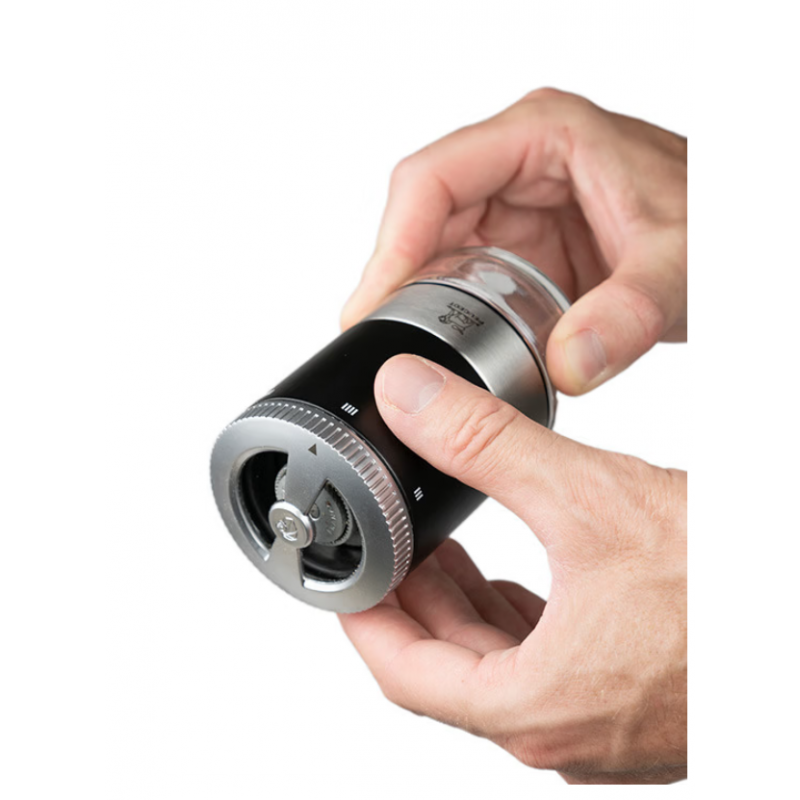 De Maestro-zoutmolen van Peugeot biedt 6 maalopties, van ijskristalzout tot knapperig zout, dankzij de U-select-functie.