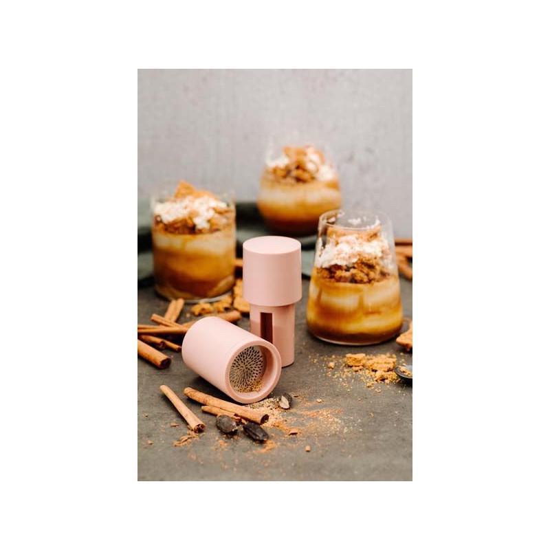 Dit 2-in-1 accessoire maakt het mogelijk om nootmuskaat en andere specerijen uiterst fijn te raspen dankzij de vlijmscherpe roestvrijstalen mesjes. Bovendien kunt u het resterende deel van uw specerijen correct bewaren in een luchtdicht compartiment dat zich in de dop van de rasp bevindt.