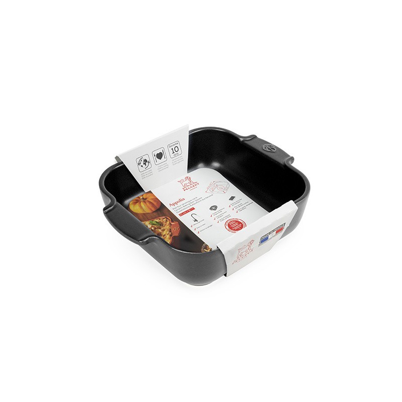 De Vierkante Ovenschaal 21x17 cm Satijn Zwart van Peugeot is een individuele ovenschaal, gemaakt van hittebestendig vuurvast keramiek. Het garandeert een zachte en gelijkmatige bereiding van uw bereidingen dankzij de uitstekende warmteverdeling, voor perfecte resultaten, zelfs onder de grill. Geef uw fantasie de vrije loop en varieer met lasagne, moussaka's, gevulde of geroosterde groenten, aardappelgratins met eekhoorntjesbrood in truffelstijl, dauphinoisgratins, gegratineerde puree op Provençaalse wijze, courgettes en courgettes, tomaat, Provençaalse tians, gebraden vlees …