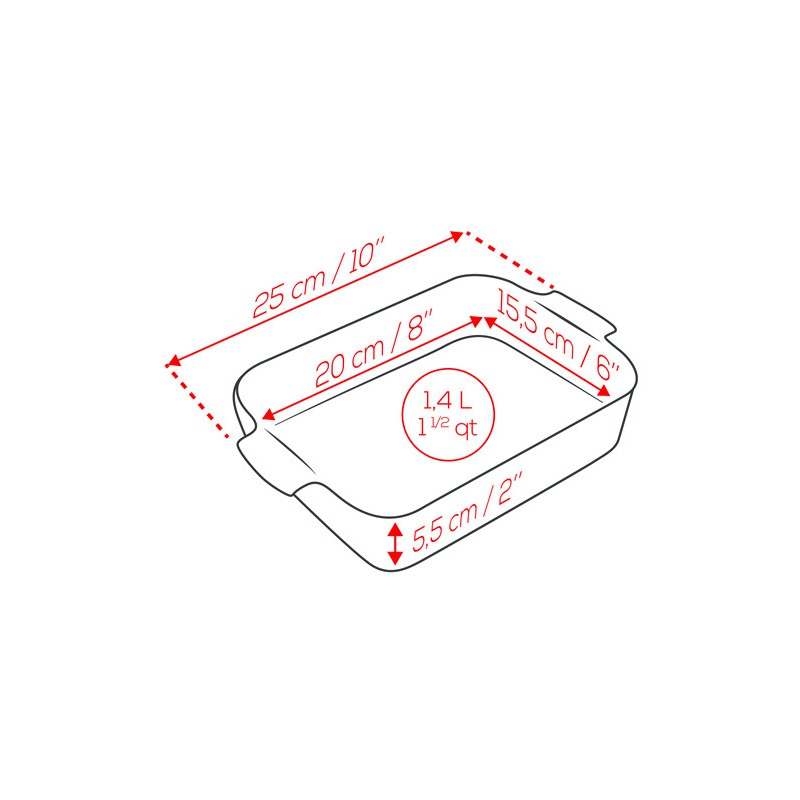 De brede handgrepen garanderen een gemakkelijke bediening en veilig transport, van oven tot tafel. Het gerecht is gemaakt van hoogwaardig keramiek en blijft 30 minuten warm nadat het uit de oven is gehaald, waardoor de temperatuur van uw heerlijke bereidingen behouden blijft.