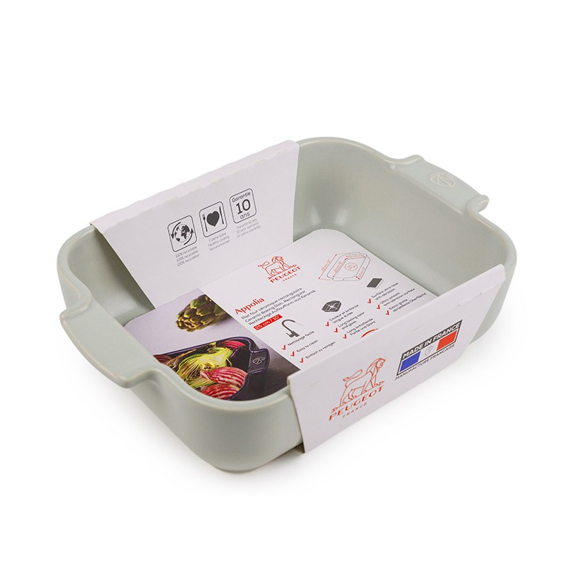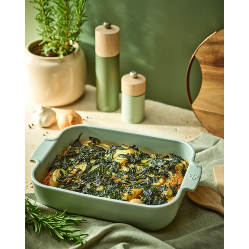 De Rechthoekige Ovenschaal 25x17 cm Matgroen Saliegroen van Peugeot is een ovenschaal, gemaakt van hittebestendig vuurvast keramiek, ideaal voor 4 personen. Het garandeert een zachte en gelijkmatige bereiding van uw bereidingen dankzij de uitstekende warmteverdeling, voor perfecte resultaten, zelfs onder de grill. Geef uw fantasie de vrije loop en varieer met lasagne, moussaka's, gevulde of geroosterde groenten, aardappelgratins met eekhoorntjesbrood in truffelstijl, dauphinoisgratins, gegratineerde puree op Provençaalse wijze, courgettes en courgettes, tomaat, Provençaalse tians, gebraden vlees …