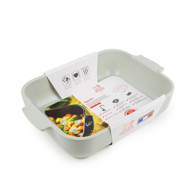 De Rechthoekige Ovenschaal 32x22 cm Mat Saliegroen van Peugeot is een ovenschaal, gemaakt van hittebestendig vuurvast keramiek, ideaal voor 4 personen. Het garandeert een zachte en gelijkmatige bereiding van uw bereidingen dankzij de uitstekende warmteverdeling, voor perfecte resultaten, zelfs onder de grill. Geef uw fantasie de vrije loop en varieer met lasagne, moussaka's, gevulde of geroosterde groenten, aardappelgratins met eekhoorntjesbrood in truffelstijl, dauphinoisgratins, gegratineerde puree op Provençaalse wijze, courgettes en courgettes, tomaat, Provençaalse tians, gebraden vlees …