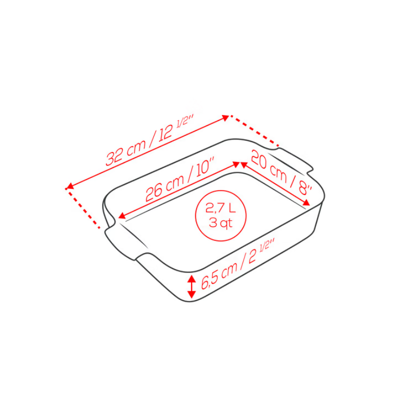 De brede handgrepen garanderen een gemakkelijke bediening en veilig transport, van oven tot tafel. Het gerecht is gemaakt van hoogwaardig keramiek en blijft 30 minuten warm nadat het uit de oven is gehaald, waardoor de temperatuur van uw heerlijke bereidingen behouden blijft.