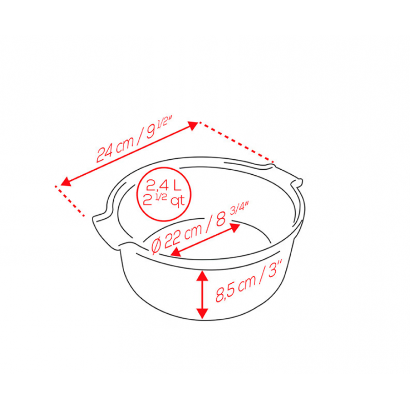 - Buitendiameter (inclusief handgrepen): 24 cm
