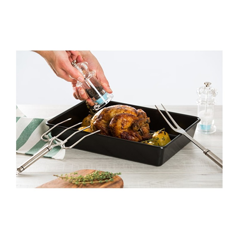 Of u nu een knapperige geroosterde kip, een rijke ovenschotel of langzaam gegaarde groenten bereidt, deze braadslede past zich aan al uw culinaire wensen aan. De hoge randen beperken spatten, houden de vleessappen binnen en zorgen voor smaakvolle, perfect beheersbare resultaten.