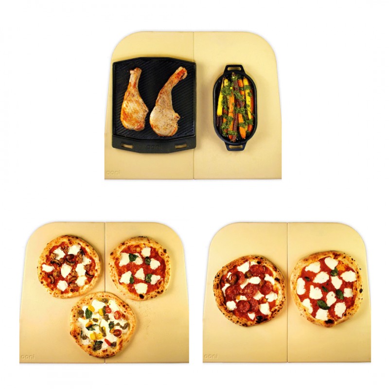 Met zijn kookoppervlak van 61 cm kunt u tegelijkertijd 3 kleine pizza's van 25 cm, 2 pizza's van 30 cm of één XXL-pizza van 55 cm bereiden en deze snel bereiden in uw Ooni buitenoven.