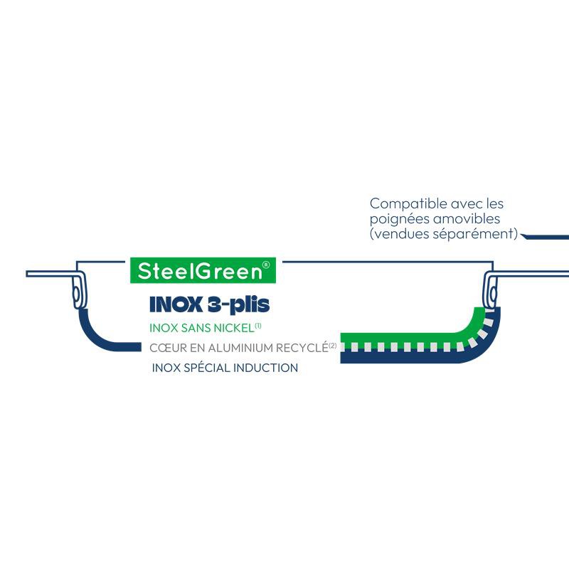 De Merveilleuse Varengroen roestvrijstalen steelpan van 16 cm (1,8 L) met afneembare handgrepen van Cookut is een nikkelvrije, PFAS-vrije en PFOA-vrije roestvrijstalen steelpan, ideaal voor dagelijks koken voor 1 tot 3 personen. Deze lichte en handzame steelpan zonder deksel is gemaakt van 3-laags roestvrij staal en is geschikt voor alle warmtebronnen, inclusief inductie, en ovenbestendig tot +220 °C. De handgrepen en het handvat van La Merveilleuse worden apart verkocht.