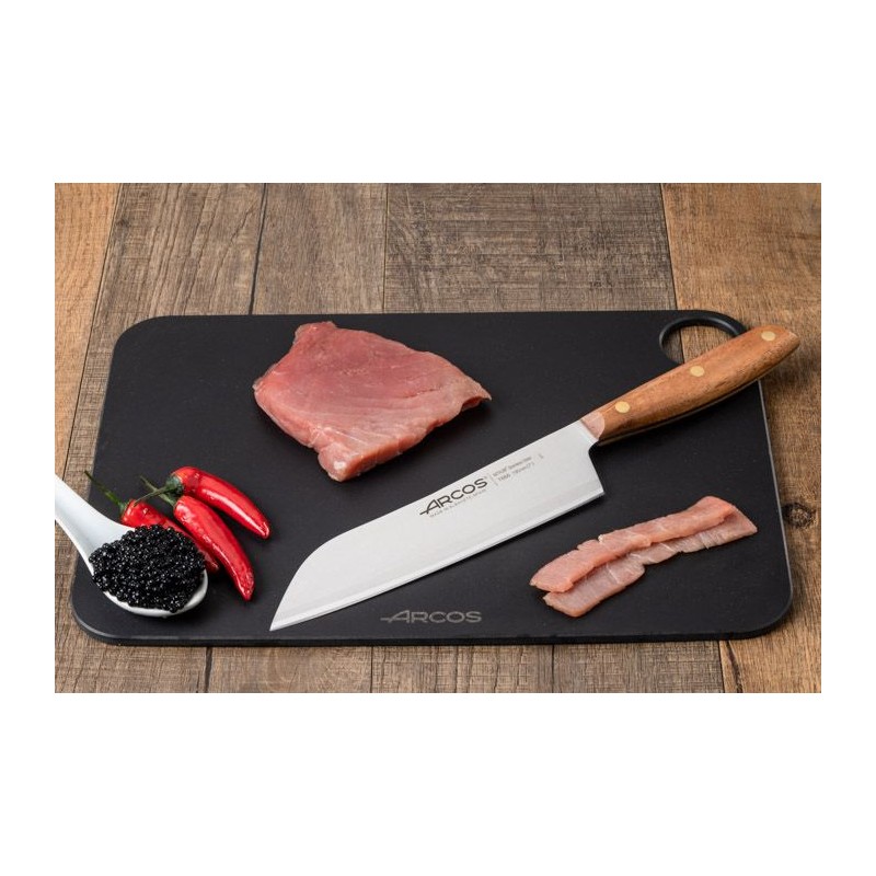 Het Nórdika 19 cm Santokumes van Arcos is een veelzijdig mes met een lang en scherp lemmet. Multifunctioneel, het wordt gebruikt voor de bereiding van vlees, vis en groenten.