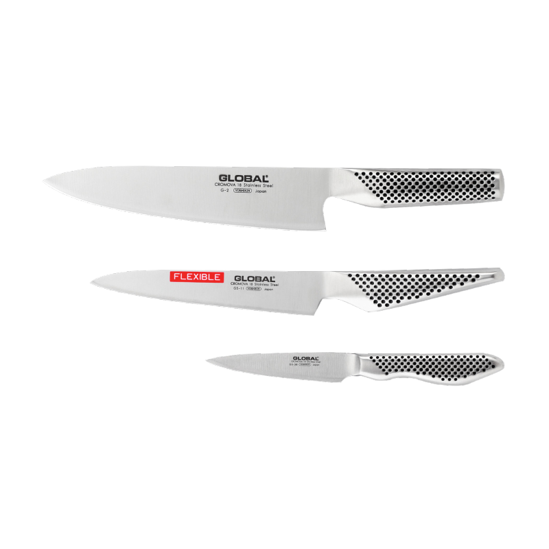 De messenset G2118 Global bestaat uit 3 keukenmessen: