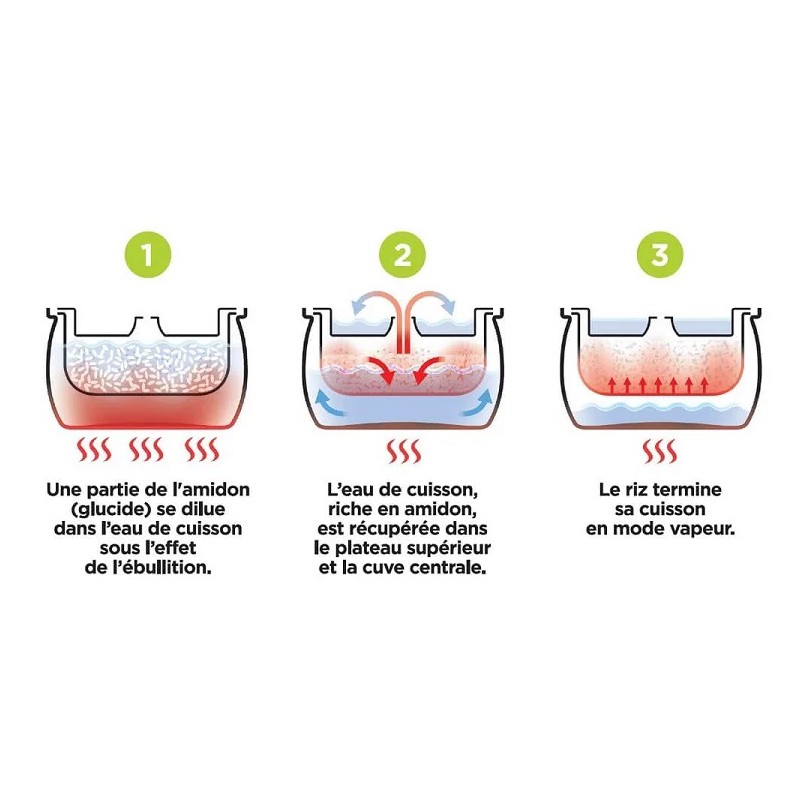 Het ingenieuze Low Sugar*-programma van de QCR370 rijstkoker vermindert het koolhydraatgehalte van rijst en de calorie-inname door de rijst voortdurend te scheiden van het zetmeelrijke kookwater. De rijstkoker is uitgerust met een roestvrijstalen mand en deksel die speciaal voor dit programma bedoeld zijn en die heel gemakkelijk in de tank kunnen worden geplaatst.Dankzij deze functie wordt het kookwater, geconcentreerd in zetmeel, opgevangen in de bovenste bak en in de centrale tank. De rijst wordt vervolgens verder gekookt in de stoommodus, waardoor het suikergehalte wordt verlaagd en een absoluut perfecte textuur wordt verkregen.Met de roestvrijstalen mand, die dienst doet als stomer of stomer, kun je ook groenten, vis of vlees stomen.