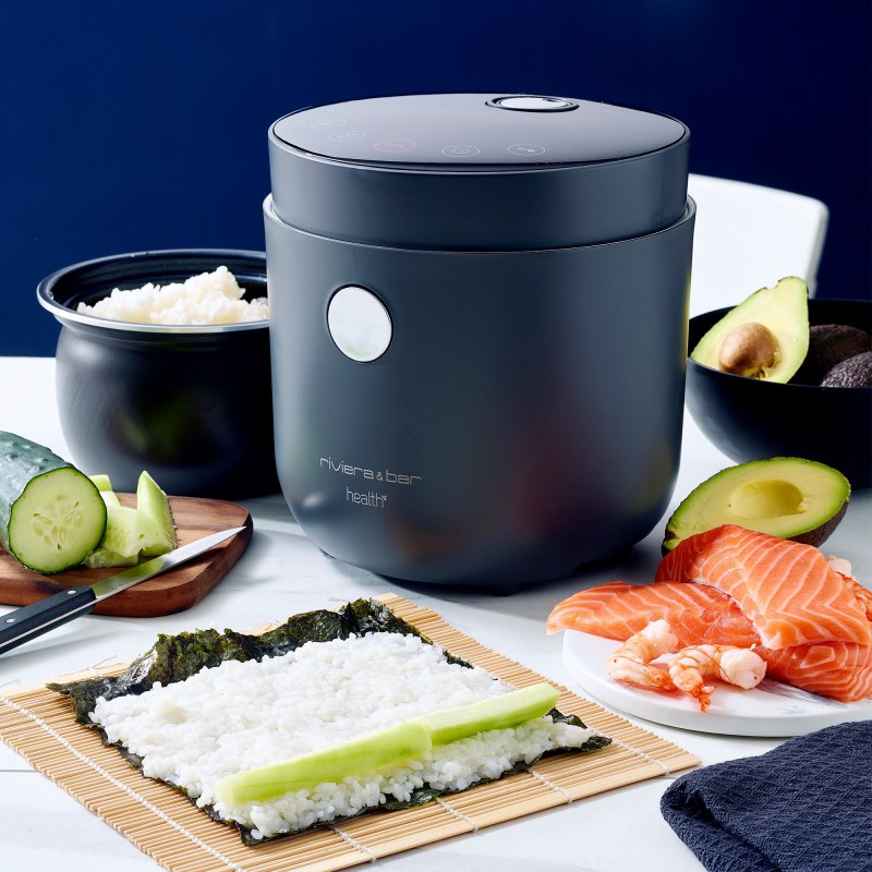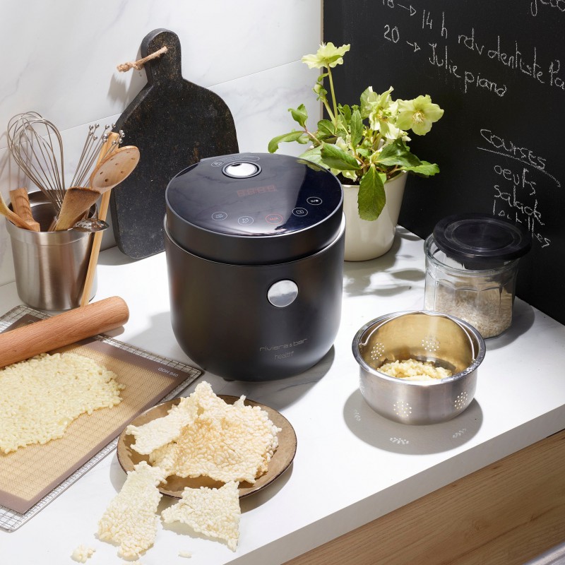 Wil je genieten van heerlijke, perfect gekookte rijst die al klaar staat als je thuiskomt van je werk Dat kan met de functie ‘Uitgestelde start’ waarmee je de bereiding van je eten tot 24 uur van tevoren kunt programmeren.De Riviera & Bar rijstkoker is voorzien van een touch-bedieningspaneel, zeer eenvoudig te gebruiken en intuïtief, dat de resterende kooktijd aangeeft. Met zijn eigentijdse design en matte antracietgrijze afwerking is de rijstkoker compact en past hij in elk keukeninterieur.Verkocht met een maatbeker en een rijstspatel.
